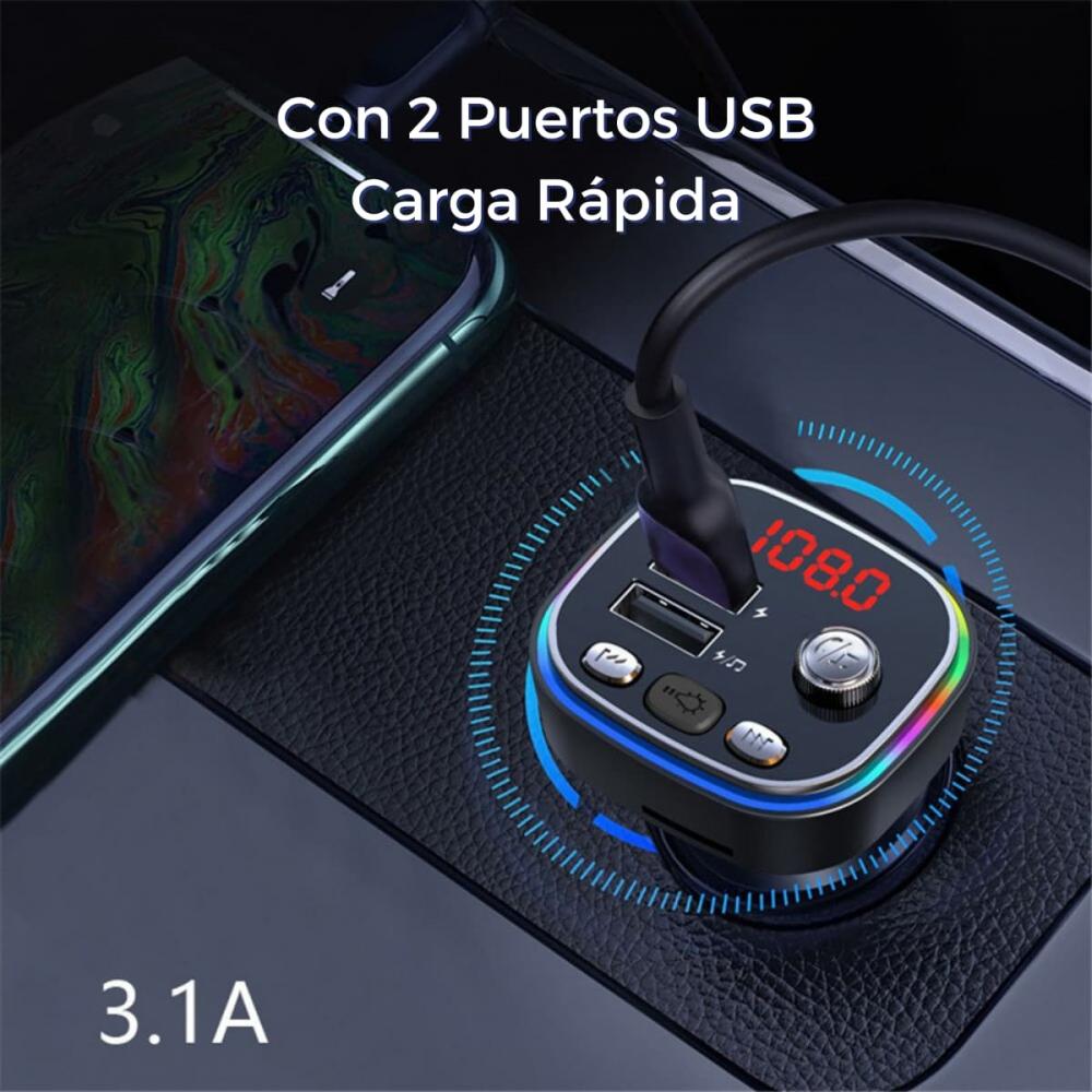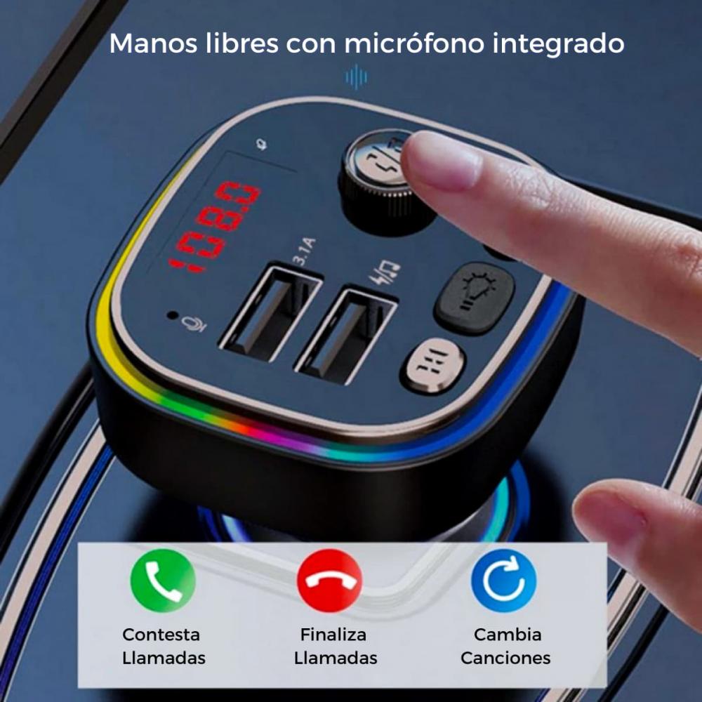 - Transmisor bluetooth fm auto Cuenta con ranura para tarjeta de memoria, entrada usb, Bluetooth y manos libres con micrófono integrado, puedes contestar llamadas sin sacar el celular desde el mismo dispositivo y también cambiar y tus canciones o grabaciones favoritas.