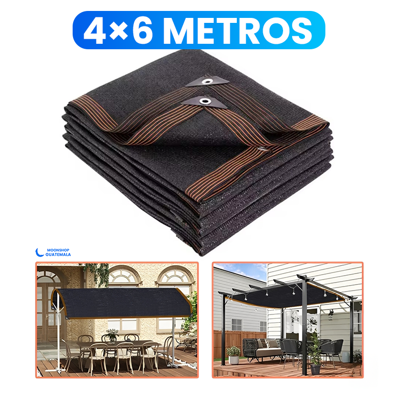 El material está tratado contra rayos UV, ayudando a proteger del sol intenso mientras permite una adecuada circulación de aire y difusión de la luz, evitando la acumulación de calor.